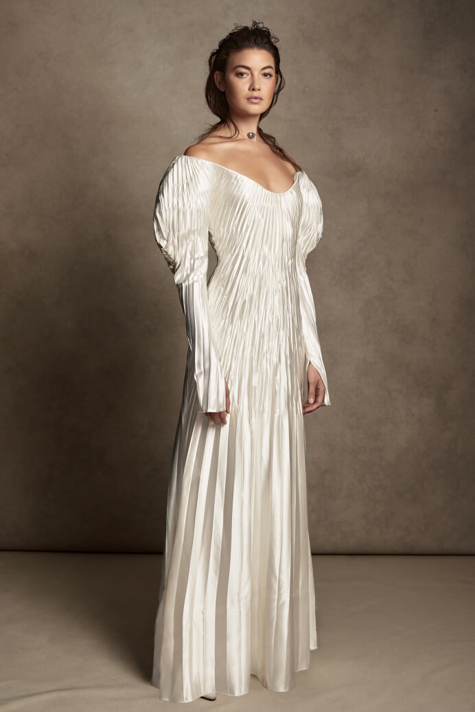 Bohemian bridal has long been a mainstay in the market—but it's not all about flower crowns and fringe. A true bohemian is defined as "a wanderer; living a socially unconventional life," according to Merriam Webster, but somehow boho bridal has leaned more towards festival dressing and all things lace rather than laissez-faire slips, gauzy separates, and all things irreverent, avant garde, and atypical.